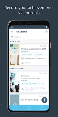 Employees can capture successes and feedback on the go. Share it with others (in particular their managers), and link their ongoing successes to their goals. Even take a photo or selfie to capture that great moment.