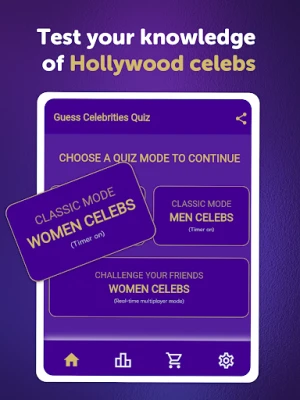 ‣ multiplayer quiz mode: challenge your friends with women's or men's celebs quiz