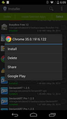 Full featured installer with tiny size, user friendly design and high performance. Scan and install market and non-market apps easily from your SD card.
