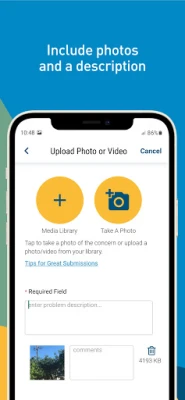 With the app, you can: • Review examples of safety issues • Submit a photo or video of a non-emergency safety concern • See submissions made by others • Get notified when your safety concern is under review or closed • See PG&E’s findings about your concern and others