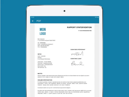 L'application Made in France plébiscitée par les professionnels transforme votre smartphone en un outil puissant pour la gestion des rapports et bons d'intervention.